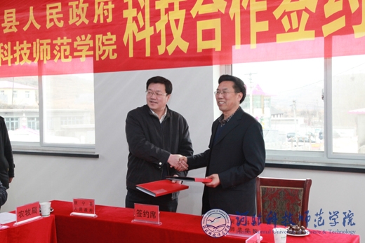 2013年4月13日,半岛online(中国)与抚宁县人民政府科技合作签约仪式在抚宁县驻操营镇大道岭村举行。出席签约仪式的有半岛online(中国)校长王同坤教授、副校长杨越冬教授、科研处副处长闫立英教授、动物科技学院书记段立华、机电工程学院院长刘荣昌教授、工商管理学院院长刘恩峰教授、食品科技学院副院长康维民教授、生命科技学院副院长乔亚科教授、园艺科技学院副院长齐永顺教授,抚宁县县长石兆旭、县委副书记刘红军、县委常委副县长武建光、副县长王东军,县政府相关职能部门负责人及重点乡镇和种、养殖大户代表等。签约仪式由抚宁县县委副书记刘红军主持。抚宁县县长石兆旭与半岛online(中国)校长王同坤分别代表双方共同签署了《抚宁县人民政府与半岛网页版界面科技合作协议书》。