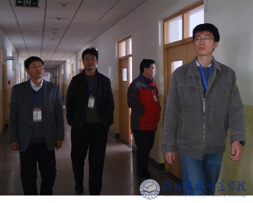 副校长张福喜(左一)巡视检查秦皇岛校区考点的考试现场
