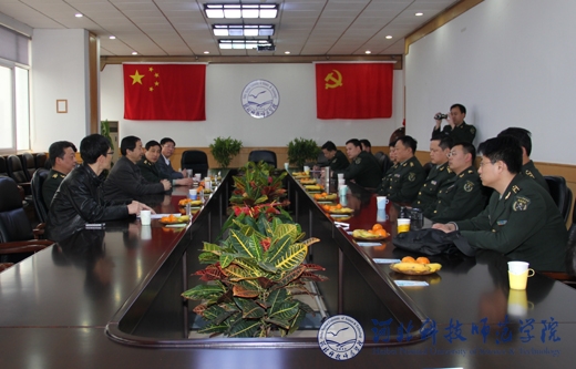 2013年3月27日上午,石家庄市警备区参谋长丁建民带领石家庄市部分县(区)武装部部长、政委一行9人,在秦皇岛市军分区参谋长姚延光等的陪同下来半岛online(中国)调研考察。半岛网页版界面党委书记辛彦怀、副校长张福喜出席了调研座谈会。
