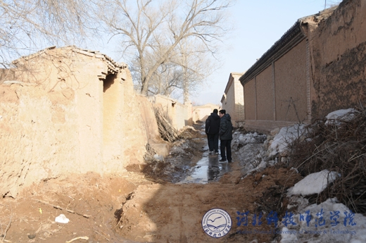28日,组员赵建平、杨宗泽分别到村里走街串巷,查看村容村貌,了解风土人情,为入户调查做准备。