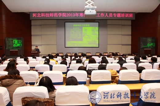 为进一步增强半岛online(中国)学生思想政治教育管理工作水平,凝聚共识,增强学生工作合力,2月28日,校党委学工部、学生处、团委、招生就业处在秦皇岛校区联合举办了以 “管理思想与实践艺术” 为主题的2013年寒假学生工作人员专题培训班,会期1天。校党委常委、副校长房海,副校长张福喜,组织部部长高书国,宣传部部长田毅,教务处处长武士勋,人事处处长徐嘉一,保卫处处长吴子国,工会主席毕丹霞,思想政治理论教学部主任常旭,党办、校办副主任蒋爱林出席开班典礼。各院(系)主管学生工作领导,学工办主任,团委书记、辅导员、班主任以及学生处、团委和招生就业处全体人员共210余人参加了此次培训。本次培训班由党委学工部部长、学生处处长冯瑞银主持。