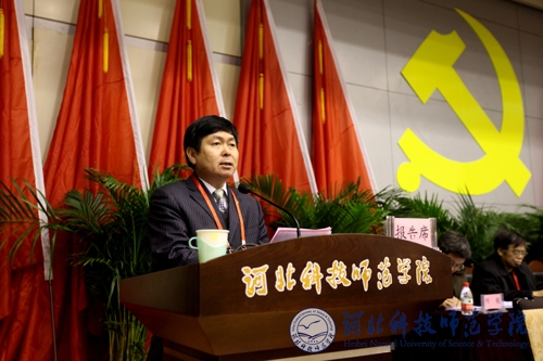朱银官同志代表中共河北省委组织部、省委教育工委致贺词。陈书增同志代表中共秦皇岛市委、市政府、市委组织部致贺词。大会副秘书长李佩国同志宣读了各兄弟院校和相关单位的贺信。