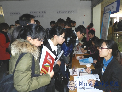 2012年11月24日至25日,半岛online(中国)分别在昌黎校区、秦皇岛校区、开发区校区、欧美学院校区举办了2013届毕业生就业双选会。校长辛彦怀,校党委常委、副校长宋绍富,副校长孟令臣等校领导亲临双选会现场检查指导工作。