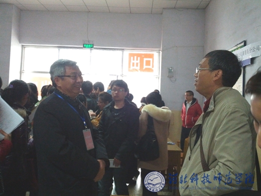 图为副校长孟令臣(左二)在招聘会现场指导工作