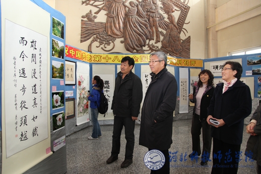 校党委常委、副校长宋绍富(左三)参观书画摄影作品展