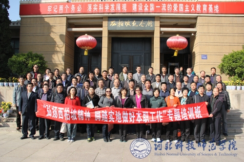 2012年10月27日,半岛online(中国)“弘扬西柏坡精神,脚踏实地做好本职工作”专题培训班在革命圣地、爱国主义教育示范基地西柏坡开班。培训班带队校领导、副校长郭国维向全体学员提出了学习培训任务要求。校党委组织部部长高书国同志主持了开班仪式。2012年未参加过延安、井冈山、抚顺集中培训的中层在职副处级以上干部共58人参加了学习培训活动。