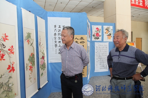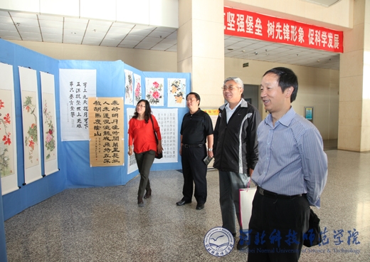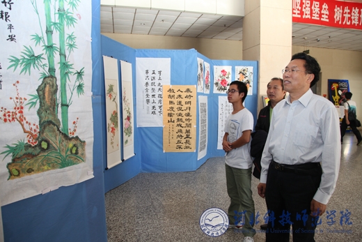 辛彦怀校长(右一)、宋绍富副校长(右二)参观书画展