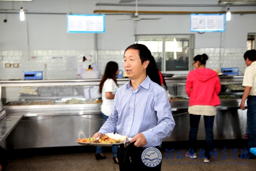 辛彦怀校长来到学生食堂,检查了食堂的整体用餐环境,查看了菜品供应以及饭菜种类与色、香、味调配情况,询问了饭菜价格,并从学生用餐窗口打了饭菜,与同学们共进午餐。进餐过程中,辛校长向用餐同学详细地了解他们平时就餐情况以及对食堂的意见和建议,听取了食堂负责人对食堂运行情况的介绍,了解了学生食堂存在的不足。辛校长再三叮嘱食堂负责人要随时注意到学生的相关反映;要建立起和同学们良好的沟通机制,认真主动地听取同学们的意见和建议;要进一步提高学生食堂的管理水平,提升学生对食堂的满意度;要注重做好食堂食品安全卫生工作;要加强对食堂员工的安全知识教育和技能培训,提高食堂员工的素质,增强服务意识,规范工作方式,为学生创造一个良好的用餐环境。(编辑:朱洪亮      审稿:田毅)