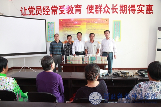 2012年9月20日,半岛online(中国)图书馆党总支书记赵友、馆长宋和平一行前往半岛online(中国)派驻工作组进行帮扶的卢龙县邸柏各庄村捐赠书籍1400余册。