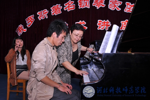 2012年10月11日下午,俄罗斯著名钢琴家伊娜教授应半岛online(中国)艺术学院邀请作学术报告及现场示范课。国际交流处、教务处、艺术学院的有关领导和艺术学院各教学部主任及部分师生参加了本次活动。艺术学院教师丛玉婷担任翻译。活动中,师生们认真听取了伊娜教授对中西方钢琴艺术发展的对比和讲析,欣赏了伊娜教授高超精湛的、带有欧洲风格的精彩演奏。艺术学院三名钢琴专业学生上台演奏,受到伊娜教授的现场指导。(编辑:孙艳敏   审稿:赵建平)