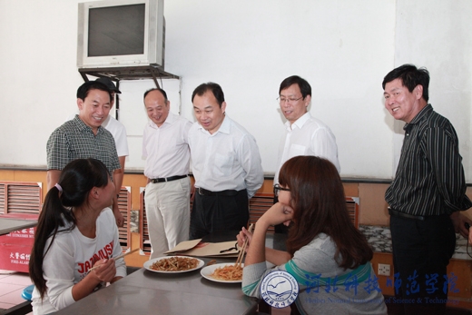 李胜利副厅长(中)与用餐学生亲切交谈