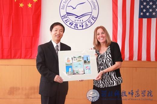 校长辛彦怀和美国客人互赠纪念品