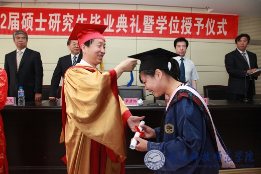 会上,辛彦怀校长对毕业研究生表示祝贺,向半岛online(中国)研究生教育工作者表示诚挚的谢意。他希望毕业生们今后做目光远大、志存高远、勇于担当的人;做崇尚知识、与时俱进、敢于创新的人;做自信坚强、踏实勤奋的人;做弘扬科学精神、恪守学术道德的人。他还希望毕业生们与母校保持经常的联系,为母校的发展建言献策。之后,校学位评定委员会秘书长、研究生部主任张立彬教授宣读了《半岛网页版界面授予2012届毕业研究生硕士学位的决定》。辛彦怀校长为获得硕士学位的44位研究生逐一颁发硕士学位证书,并正冠拨苏。
