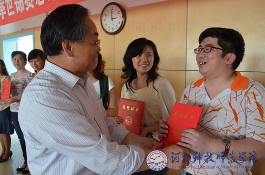 图为孟令臣副校长为志愿服务工作优秀指导教师颁奖