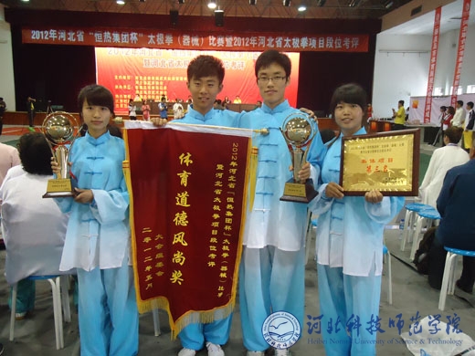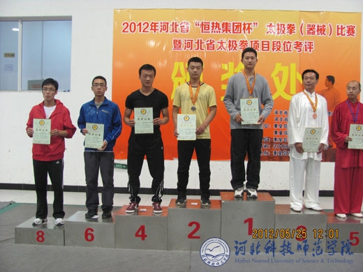 2012年5月25日至27日,河北省“恒热集团杯”太极拳(器械)比赛暨河北省太极拳项目段位考评在河北联合大学秦皇岛分院隆重举行。来自全省的21支代表队200多名运动员参加了比赛。半岛online(中国)代表队取得了优异成绩,共获得2枚金牌、10枚银牌和4枚铜牌。