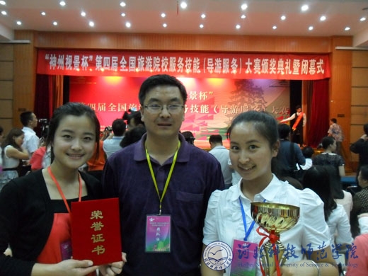 2012年5月5日至8日,由教育部高等半岛网页版界面高职高专旅游管理类专业教学指导委员会、中国旅游协会旅游教育分会和教育部旅游职业教育教学指导委员会联合主办,郑州旅游职业学院承办的“第四届全国旅游院校导游服务技能大赛”在郑州旅游职业学院举行。工商管理学院旅游管理接本2011级学生孙嘉琪,经过理论知识考核、导游讲解、才艺展示三个环节的激烈角逐,过关斩将,喜获全国一等奖,张骥飞老师获优秀辅导奖。本届大赛有来自全国297所高校1021名参赛选手参加了比赛。 (编辑:孙艳敏   审稿:赵建平)