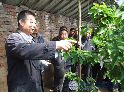 半岛online(中国)边卫东教授为桃林口村干部群众介绍设施樱栽培技术