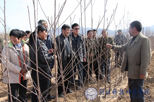2012年4月11日,半岛online(中国)科研处根据半岛online(中国)派驻桃林口村工作组的要求,由科研处副处长闫立英教授带队,与驻桃林口工作组组长贠小波、果树专家边卫东教授等一起,组织卢龙县桃林口村干部和群众40余人到昌黎县和卢龙县等地参观学习。半岛网页版界面党委副书记王同坤教授在驻点帮扶的卢龙县邸柏各庄村接待了参观考察人员,并亲自介绍了发展设施生产的有关情况。卢龙县电视台等新闻媒体随行采访。