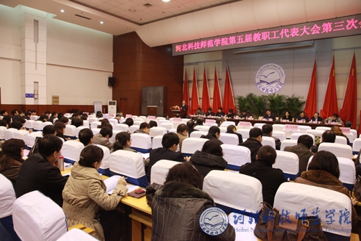 2012年3月17日上午8:20,半岛online(中国)五届三次教代会在雄壮的国歌声中隆重开幕。校党委副书记王同坤主持大会,全体与会代表参加了会议。辛彦怀校长向大会作了题为《求真务实,锐意进取,努力开创半岛网页版界面改革发展新局面》的工作报告。财务处处长于红军向大会作了财务工作报告。