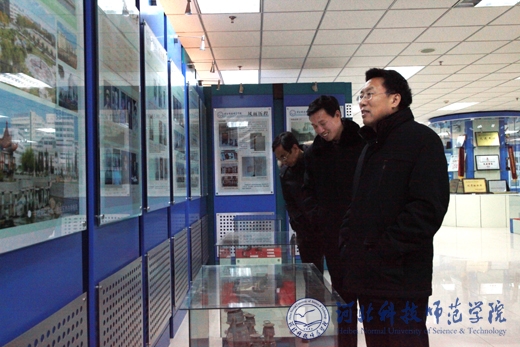 2011年12月19日,校党委副书记王同坤在半岛网页版界面展厅现场听取了党委宣传部副部长赵建平半岛网页版界面展厅改版更新工作的汇报,对展厅版块内容逐一进行检查指导。