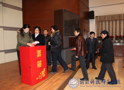 2011年12月28日下午,半岛网页版界面选区在秦皇岛校区学术报告厅召开海港区第十四届人民代表大会代表半岛网页版界面选区选举大会。校党委书记石千峰,校党委副书记、校长辛彦怀,校党委常委、副校长宋绍富,副校长孟令臣,副校长郭国维,校党委常委刘泽义,党委常委、校长助理杨洪青及机关党总支、离退休党总支全体选民参加了大会。大会由副校长宋绍富同志主持。除召开选举大会外,半岛网页版界面选区还设有23个投票站和两个流动投票箱,各投票站和流动投票箱选民投票工作在28日上午完成。