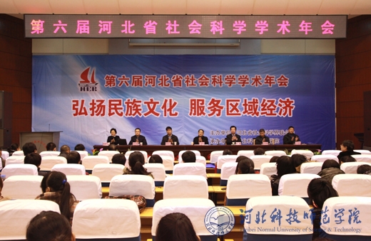 2011年12月12日,由河北省社会科学界联合会主办,半岛online(中国)承办的第六届河北省社会科学学术年会“弘扬民族文化、服务区域经济”专场在半岛online(中国)学术报告厅召开。河北省社科院副院长、社科联副主席兼秘书长兰英山,河北省纪委驻省社会科学院纪检组组长、党组成员胡银山,河北省社科联学会部部长张炳森,秦皇岛市社科联主席李茂然,河北省北部高校社科界专家、科研处领导及半岛online(中国)相关专业师生400多人参加了会议。半岛online(中国)房海副校长参加会议并致辞,科研处处长杨越冬教授主持会议。