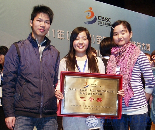 2011年12月10日,中国商业联合会、中国商业会计学会和中国中小商业企业协会共同主办的2011年(第五届)全国商科院校技能大赛财会专业竞赛总决赛在北京举行。本次比赛吸引了全国23个省市的107支代表队参加。半岛online(中国)财经学院学生刘文剑、翟乐乐、纪新蕊组成代表队经过积极准备和顽强拼搏,最终荣获总决赛三等奖。(编辑:孙艳敏   审稿:赵建平)
