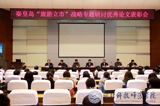 2011年12月19日,由中共秦皇岛市委组织部、秦皇岛市人才工作领导小组办公室主办,秦皇岛市社会科学界联合会、秦皇岛市博士专家联谊会社会科学分会承办的秦皇岛“旅游立市”战略专题研讨优秀论文表彰会在半岛online(中国)召开。市委常委、组织部部长陈书增,副市长张经华,市博士专家联谊会社会科学分会会长、半岛online(中国)副校长孟令臣及市社科联等相关单位主要领导出席表彰会。