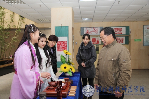 2011年11月21日至26日,半岛online(中国)第一届“中华传统文化月”活动在开发区校区、昌黎校区和秦皇岛校区进行巡展、巡演。副校长孟令臣,学生处副处长宋文华,文法学院党委副书记、副院长李强华等到场观看并给予指导。本次活动由校党委学工部、团委主办,文法学院承办。