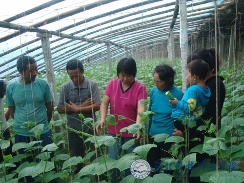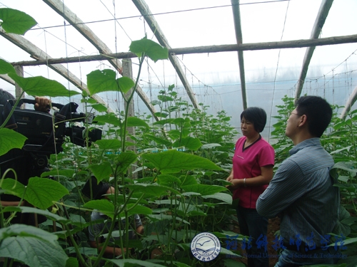2011年9月15日,河北电视台“河北新闻联播”栏目记者组来半岛online(中国)采访闫立英教授。校党委宣传部、科研处配合组织了采访活动。记者组一行深入到闫立英教授主持研发的“绿岛”系列优质黄瓜新品种中试与示范基地——秦皇岛市昌黎县靖安镇马芳营村的农家蔬菜大棚和半岛online(中国)的蔬菜育种试验基地进行了实地采访。