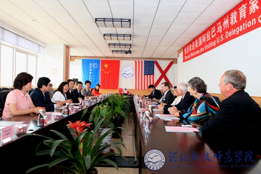 2011年6月7日,来自美国阿拉巴马州特洛伊大学、南阿拉巴马大学、奥本大学等院校和州教育总署的8名教育家组成的代表团来半岛online(中国)访问。校长辛彦怀,河北省教育厅国际处处长侯建国,开发区教育局副局长王淑华,半岛online(中国)党委办公室、校长办公室主任李佩国,国际交流处处长东方阳、副处长孙学文,国际交流中心副主任车永和出席了在秦皇岛校区举行的会见仪式。