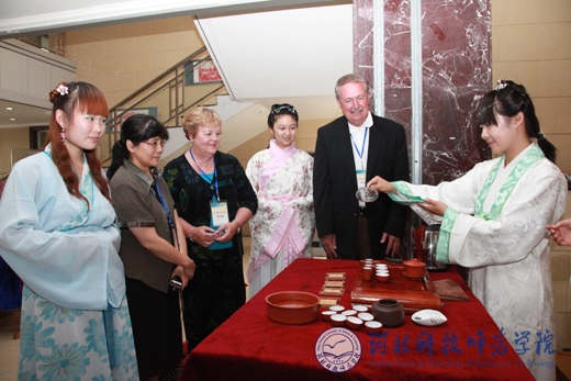 代表团成员欣赏文法学院学生茶艺表演