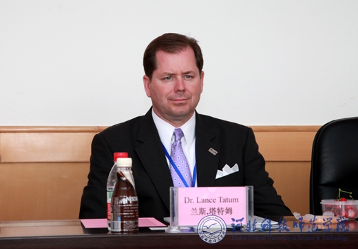 美国阿拉巴马州教育家代表团团长兰斯•塔特姆介绍特洛伊大学教育学院情况