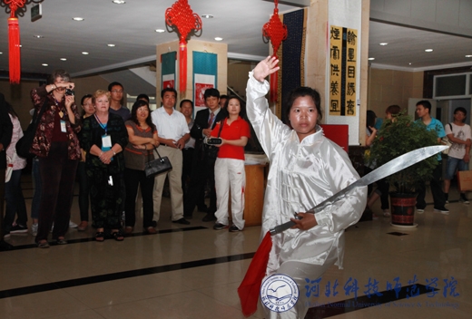 代表团成员欣赏半岛online(中国)体育学生太极刀表演