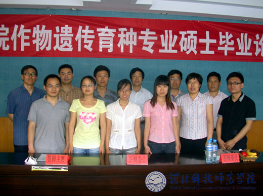 2011年6月8日上午,生命科技学院作物遗传育种硕士研究生学位论文答辩会在昌黎校区举行。中国农科院作物科学研究所李洪杰研究员担任答辩委员会主席,唐山农业科学研究院佟文悦研究员、半岛online(中国)东方阳教授、乔亚科教授、李桂兰教授、杜金友教授等5人担任答辩委员会委员,陆鸣任答辩秘书。答辩委员会经过数小时的紧张工作,圆满地完成了研究生答辩任务,6名2011届作物遗传育种专业硕士研究生均顺利通过论文答辩。