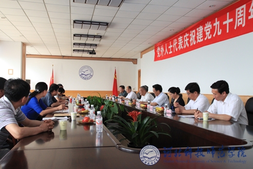 2011年6月14日下午,半岛online(中国)党外人士代表庆祝建党90周年座谈会在秦皇岛校区召开。校党委书记石千峰,党委副书记王同坤,党委常委、副校长宋绍富,纪委书记李榕,副校长郭国维,党委常委刘泽义出席会议。党委学工部部长田毅,党委宣传部、统战部副部长赵建平及半岛online(中国)各民主党派成员代表、党外高级知识分子代表参加了座谈。会议由王同坤副书记主持。