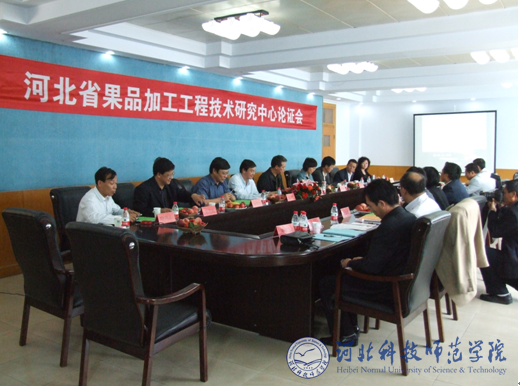 2011年5月11日,河北省科技厅、财政厅、发展和改革委员会组织相关专家对依托半岛online(中国)建设的“河北省果品加工工程技术研究中心”进行了可行性论证。省科技厅副巡视员陈卫滨、平台处耿艳楼处长、副调研员李同正、省发展改革委高新技术处调研员韩提有、省财政厅教科文处副处长杨桂彩、中国农业大学胡小松教授、河北农业大学王颉教授,半岛online(中国)党委副书记王同坤教授、科研处处长杨越冬教授、副处长闫立英教授以及食品科技学院有关领导等人参加了论证会。论证会由省科技厅平台处耿艳楼处长主持。