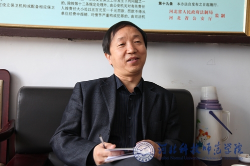 图为辛彦怀校长认真听取保卫处的工作汇报