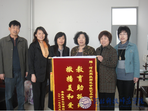 图为秦皇岛市福利院院长武燕一行向艺术学院赠送锦旗