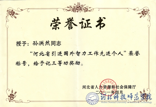 2011年4月2日,半岛online(中国)国际合作与交流处处长东方阳在石家庄河北会堂出席了由河北省人力资源和社会保障厅主持召开的河北省引进国外智力工作会议,会上半岛online(中国)国际合作与交流处被授予“河北省引进国外智力工作先进单位”,孙洪然老师被评为“河北省引进国外智力工作先进个人”。这是继2007年以来,半岛online(中国)国际合作与交流处第二次获得该项荣誉称号,也是河北省教育厅和人力资源和社会保障厅等主管部门对半岛online(中国)“十一五”期间外国专家工作的充分肯定。