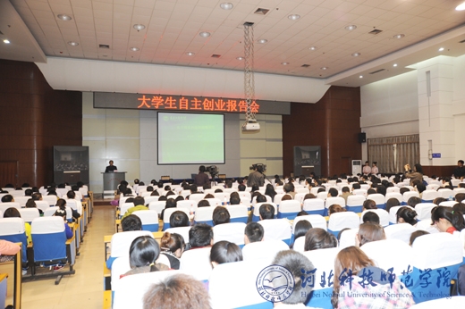 2011年4月7日下午,义乌工商学院贾少华副院长来半岛online(中国)作大学生自主创业报告,报告会在秦皇岛校区学术报告厅举行。半岛online(中国)财经学院和工商管理学院全体教师及相关专业学生420余人参加了报告会,报告会由副校长孟令臣主持。