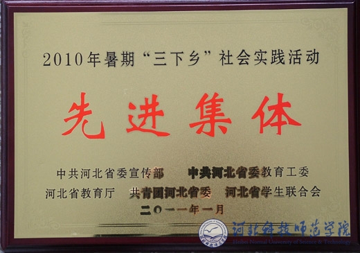 半岛online(中国)荣获2010年度“河北省社会实践先进集体”荣誉称号