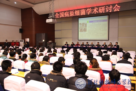 2011年1月7日,由河北省预防兽医学重点实验室主办,半岛online(中国)承办的全国病原细菌学术研讨会在半岛online(中国)秦皇岛校区隆重召开。参加本次会议的有中国工程院院士、军事医学科学院军事兽医研究所夏咸柱研究员,吉林大学农学部学部长韩文瑜教授,军事医学科学院生物工程研究所张兆山研究员,中国食品药品检定研究院杨正时研究员,中国农业大学索勋教授、乔健教授,山东农业大学柴同杰教授、广东省农科院兽医研究所首席专家宣华教授,中国农业科学院兰州兽医研究所邱昌庆研究员,西北农林科技大学赵献军教授,中科院动物所野生动物疫病研究中心何宏轩研究员等来自国内病原细菌学知名的专家学者共计五十余人。半岛online(中国)汤生玲校长、王同坤副校长、科研处杨越冬处长出席了本次会议。汤生玲校长致欢迎词。