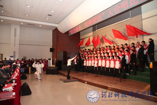 校党委书记石千峰、副校长孟令臣分别在开发区校区和秦皇岛校区、昌黎校区的比赛现场致辞。比赛过程中,全体参赛师生精神饱满,热情高涨,仪表端庄,歌声嘹亮,用真情的旋律充分表达了“爱党、爱国、爱校”的思想感情。经过激烈角逐,工商管理学院荣获一等奖,城市建设学院和体育系荣获二等奖,生命科技学院、欧美学院、机电工程学院、数学与信息科技学院、外国语学院获得三等奖。