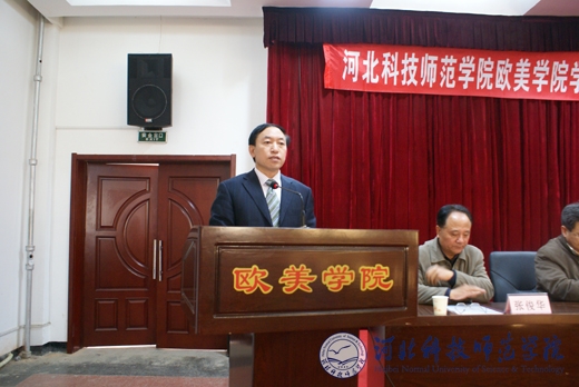 图为校党委常委、欧美学院党委书记杨洪青在会上讲话
