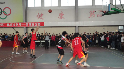 图为副校长孟令臣为篮球赛开球