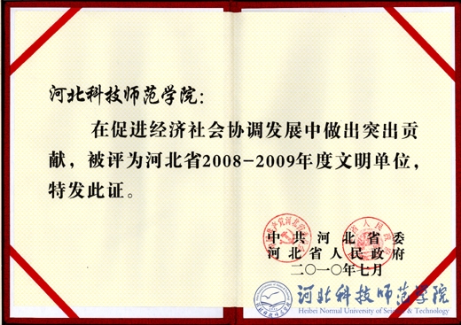 半岛online(中国)被评为“河北省2008—2009年度文明单位”