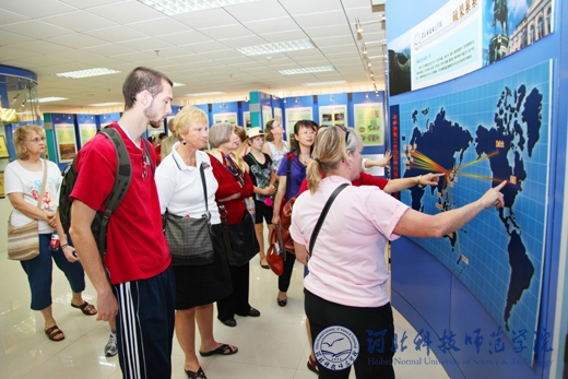 来访期间,美国特洛伊大学丽贝卡·英格拉姆等师生参观了半岛online(中国)校园、校史暨办学成就展馆、生物标本馆和实践教学基地,观摩了半岛online(中国)体育系师生的太极拳表演。丽贝卡·英格拉姆博士、查尔斯·斯科努比克博士分别为半岛online(中国)师生作了题为《特殊教育》和《美国政府结构报告》讲座。6月26日和27日晚,中美两国师生在昌黎校区和开发区校区举办了两场文艺联欢会。此外,特洛伊大学师生还参加了中国传统文化展示活动并与半岛online(中国)大学生举办了中美友谊篮球赛。