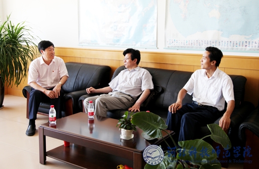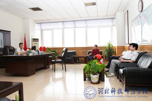 图为校长汤生玲会见潘光记者和姜明文编辑