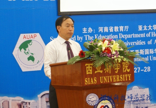 “中外合作办学教育发展国际论坛暨第十一届亚太大学联合会学习与分享论坛”于2010年5月27日至28日在河南郑州大学西亚斯国际学院隆重举行。会议由亚太大学联合会、河南省教育厅主办,郑州大学西亚斯国际学院承办,论坛以“高等教育与国际合作”为主题,旨在加强国际学术交流,探讨中外合作办学的理论与实践,为我国合作办学的发展注入新的活力和动力。半岛online(中国)党委常委、欧美学院党委书记、院长杨洪青,国际交流处处长东方阳,欧美学院董事长陈秋兰参加了会议。